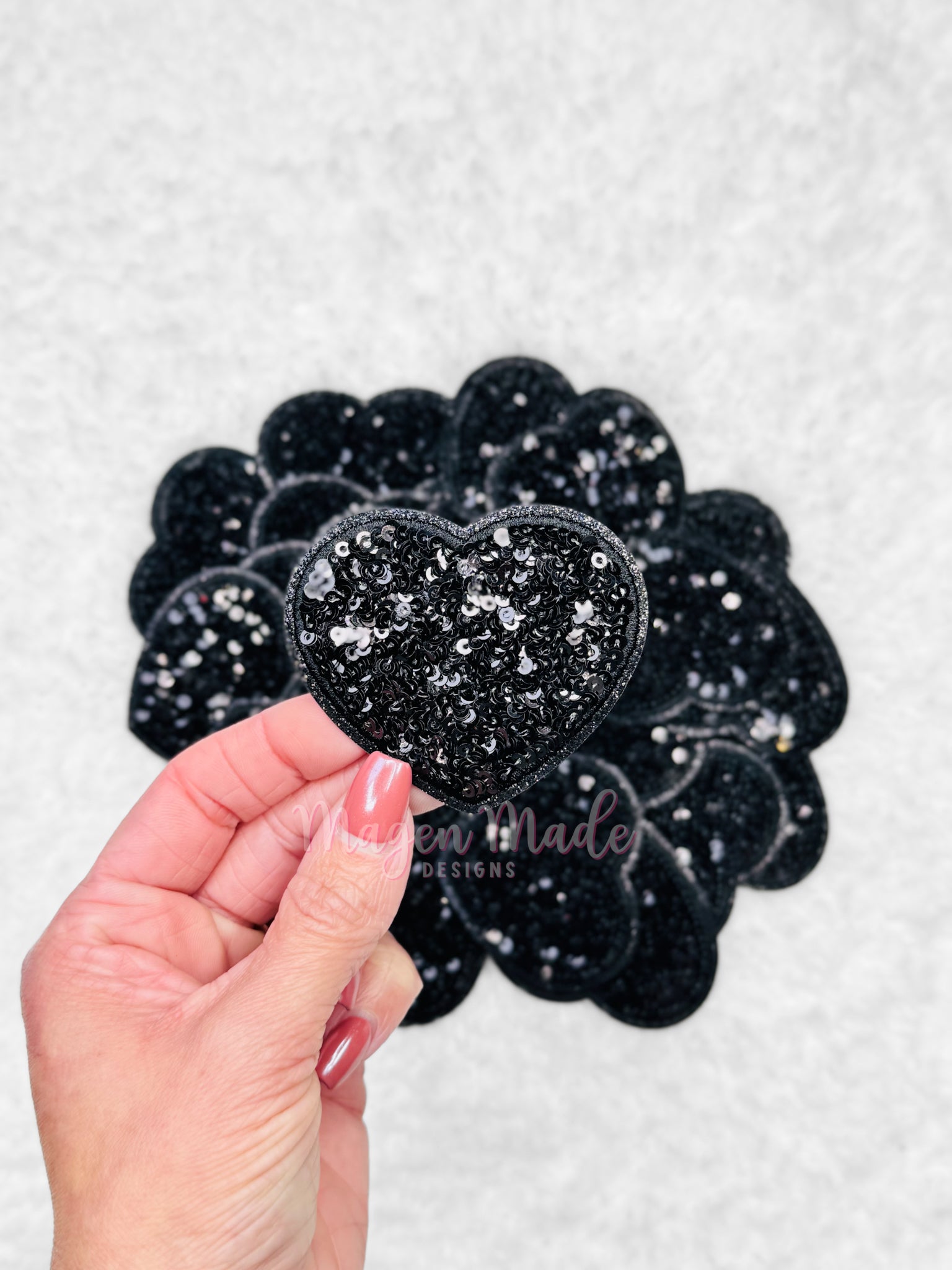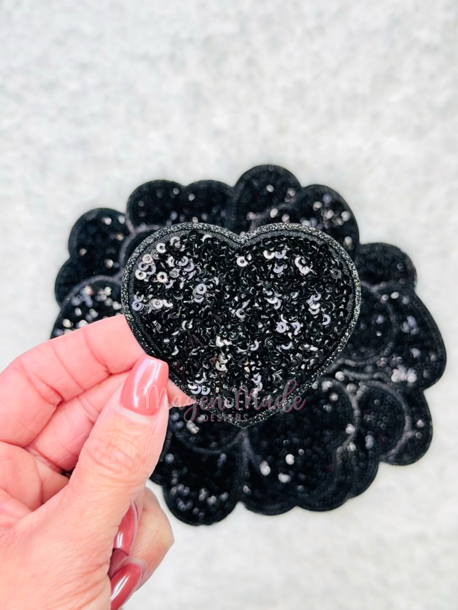 Heart- Small Iron On Glitter and Sequins Patch